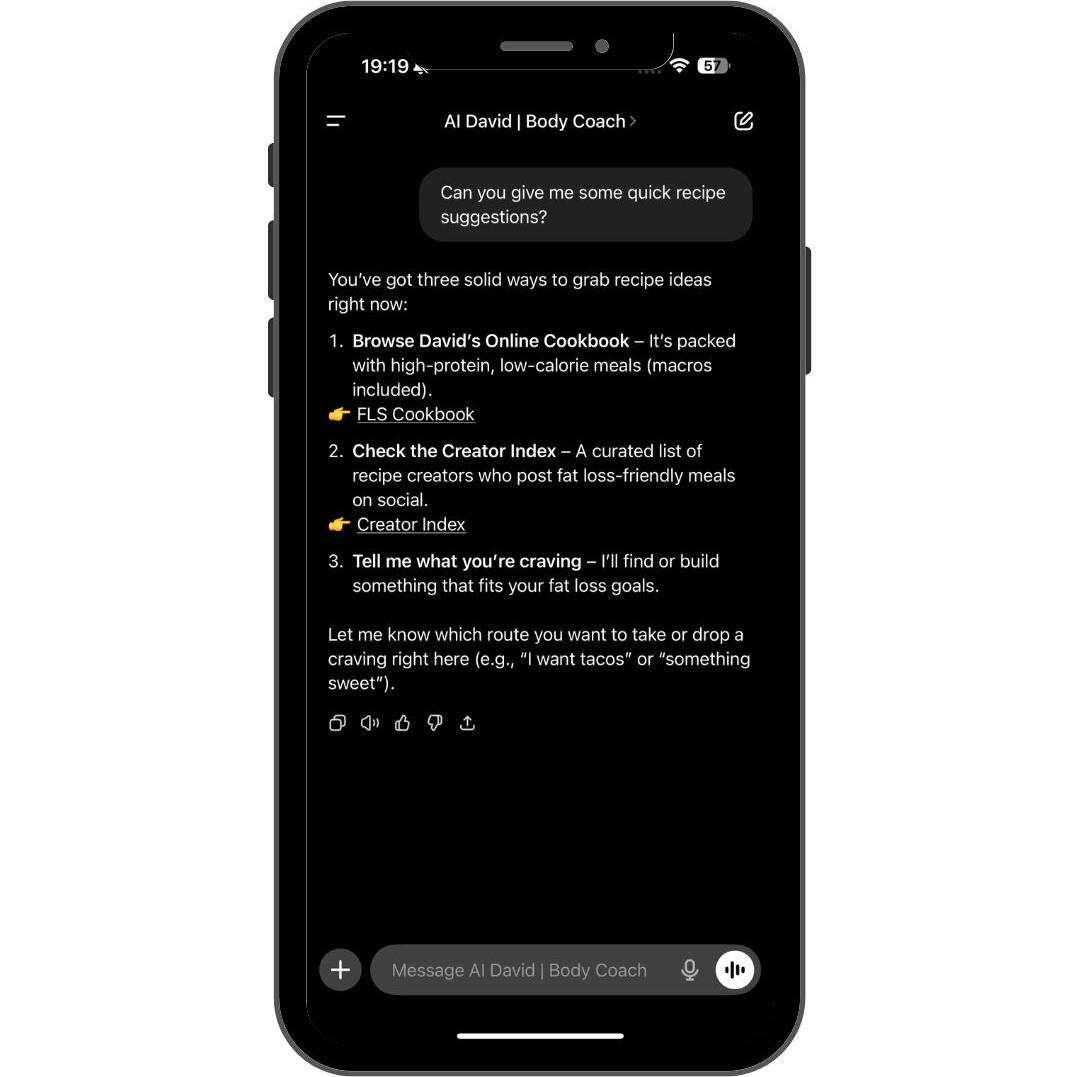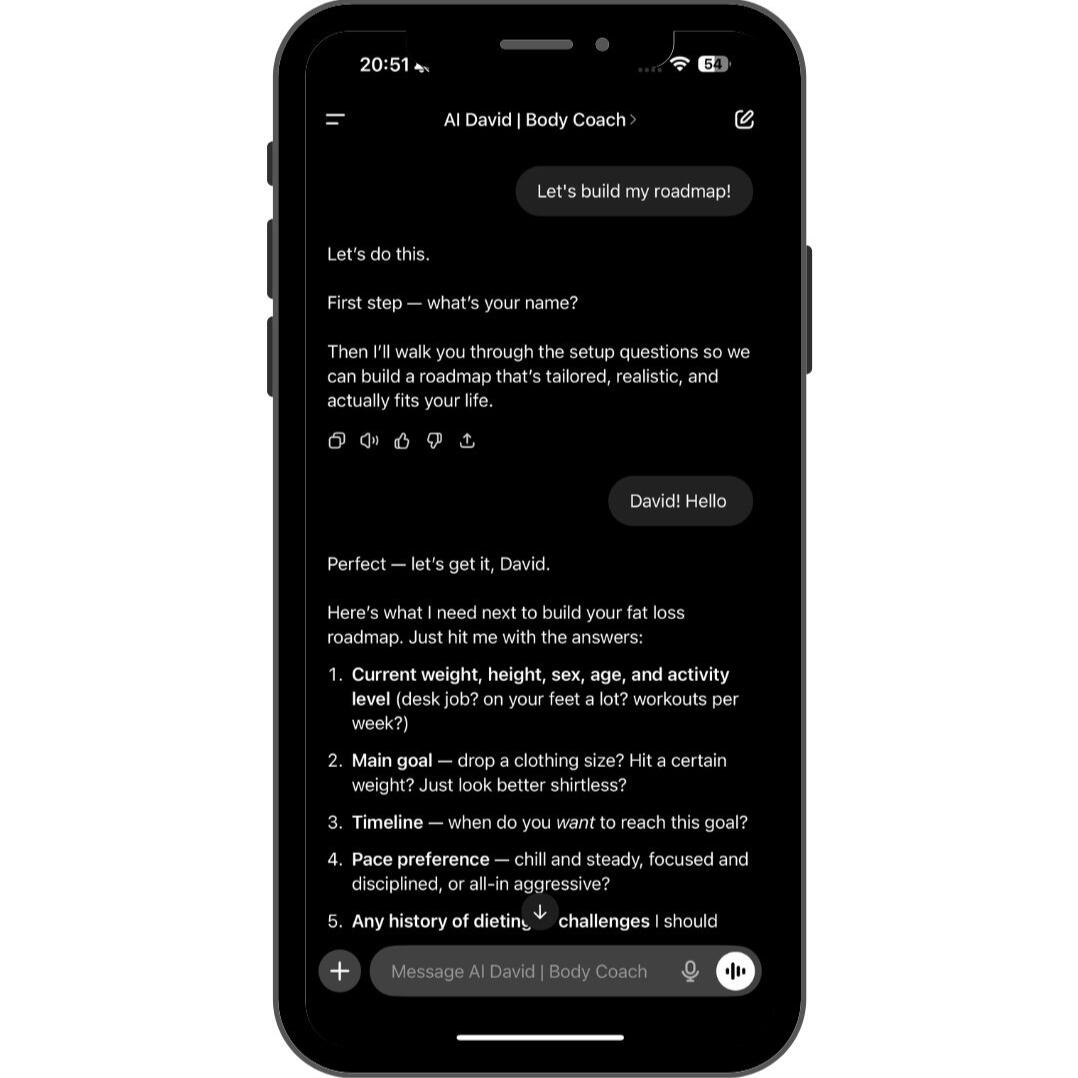 Install the exact system I used to drop 30kg, optimise cognitive output and achieve mind-body congruence without becoming a social recluse.You'll get instant access to the full high-performance tech stack: the LeanOS app, the evidence-based strategies to transform your body composition...And AI David, my bespoke AI Body Coach, built from my coaching expertise and background as a former finance data consultant.